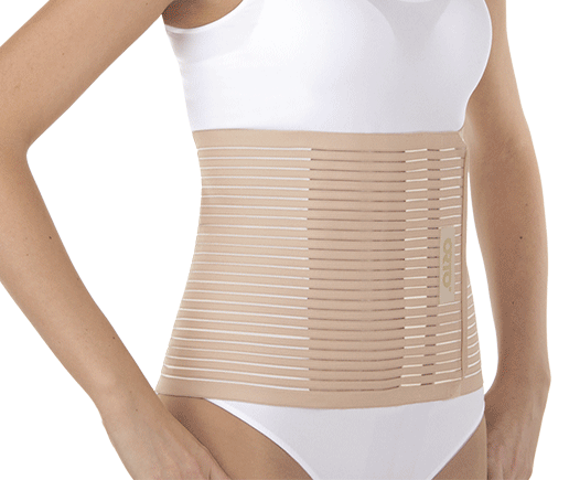 Абдоминальный ортез с разъемной основой из эластичного материала, форма которого адаптирована под женский тип фигуры (нижний объемный размер больше верхнего). Разработан по технологии AirPlus: основа изделия изготовлена из эластичного материала разреженной вязки, застежка «Велкро» имеет дискретную конструкцию, гибкие планшетки предотвращают скручивание. Высота бандажа ― 24 см.