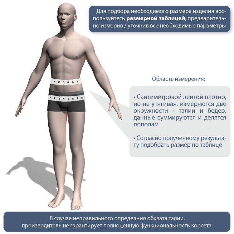 В случае неправильного определения обхвата талии, производитель не гарантирует полноценную функциональность корсета.