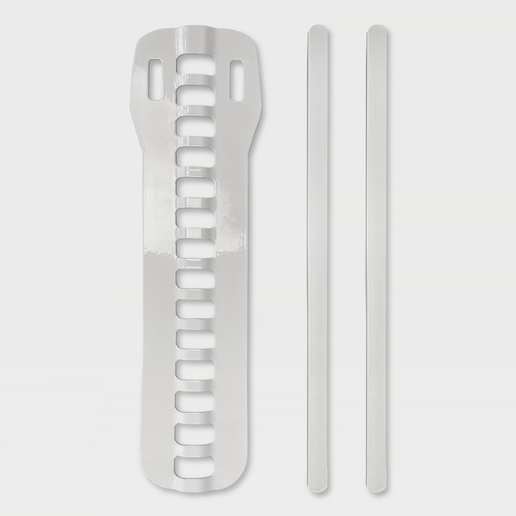 - каркасную функцию обеспечивают взаимозаменяемые металлические ребра жесткости: широкая моделируемая шина и два узких ребра. Это позволяет стабилизировать позвоночник в положении оптимальной коррекции.